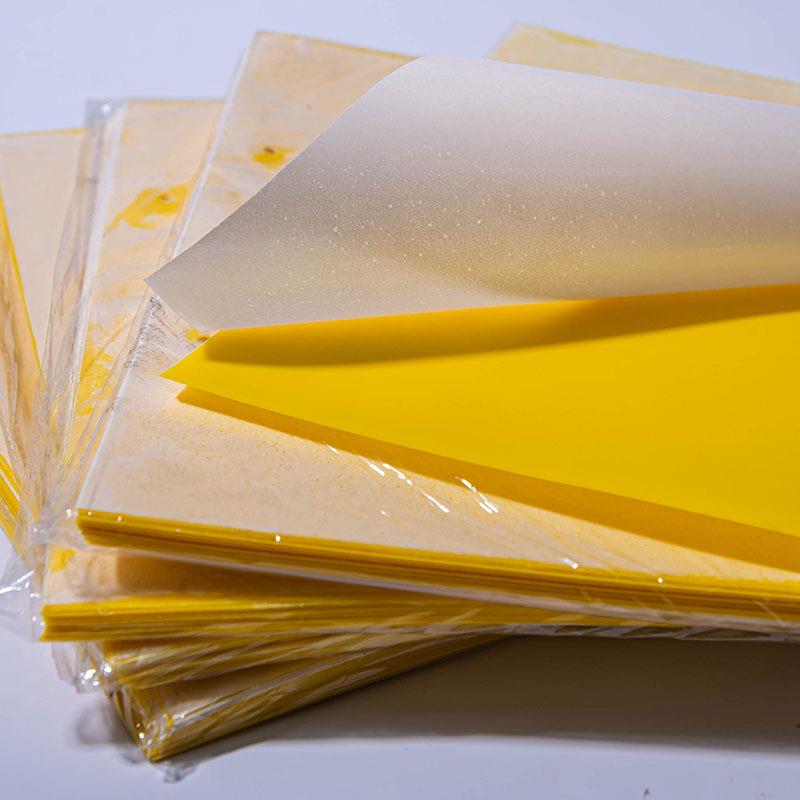 Se kat jòn kolan te fè nan fèy plastik polipropilèn and ak lage papye. epesè a se alantou 0.42mm. Nou gen pyèj jòn kolan, pyèj ble kolan, pyèj vèt kolan, pyèj nwa kolan, pyèj blan kolan, elatriye.